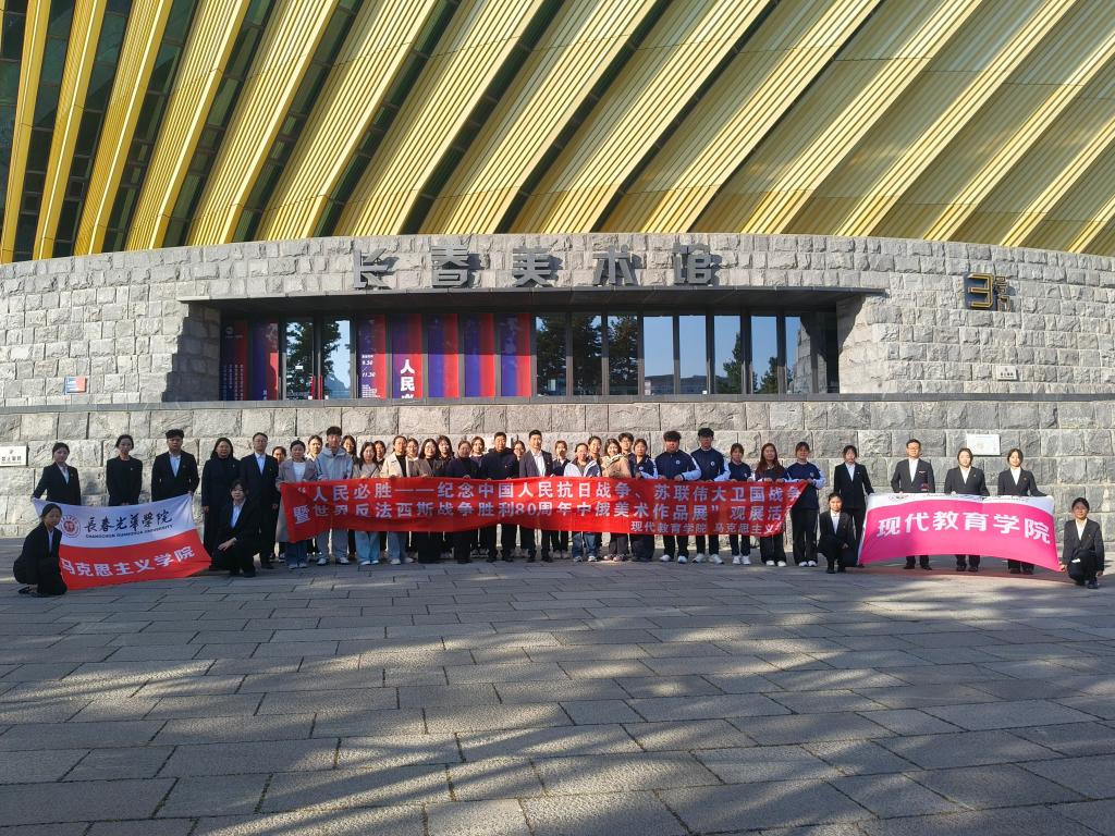 为纪念中国人民抗日战争、苏联卫国战争暨世界反法西斯战争胜利80周年,铭记历史,缅怀先烈,10月16日,长春光华学院现代教育学院联合马克思主义学院共同走进长春美术馆,观看“人民必胜——纪念中国人民抗日战争、苏联伟大卫国战争暨世界反法西斯战争胜利80周年中俄美术作品展”,马克思主义学院院长薛丽、现代教育学院院长刘国权、现代教育学院党总支副书记韩刚、师生党员、学生骨干、2025级学生代表参加观展活动。